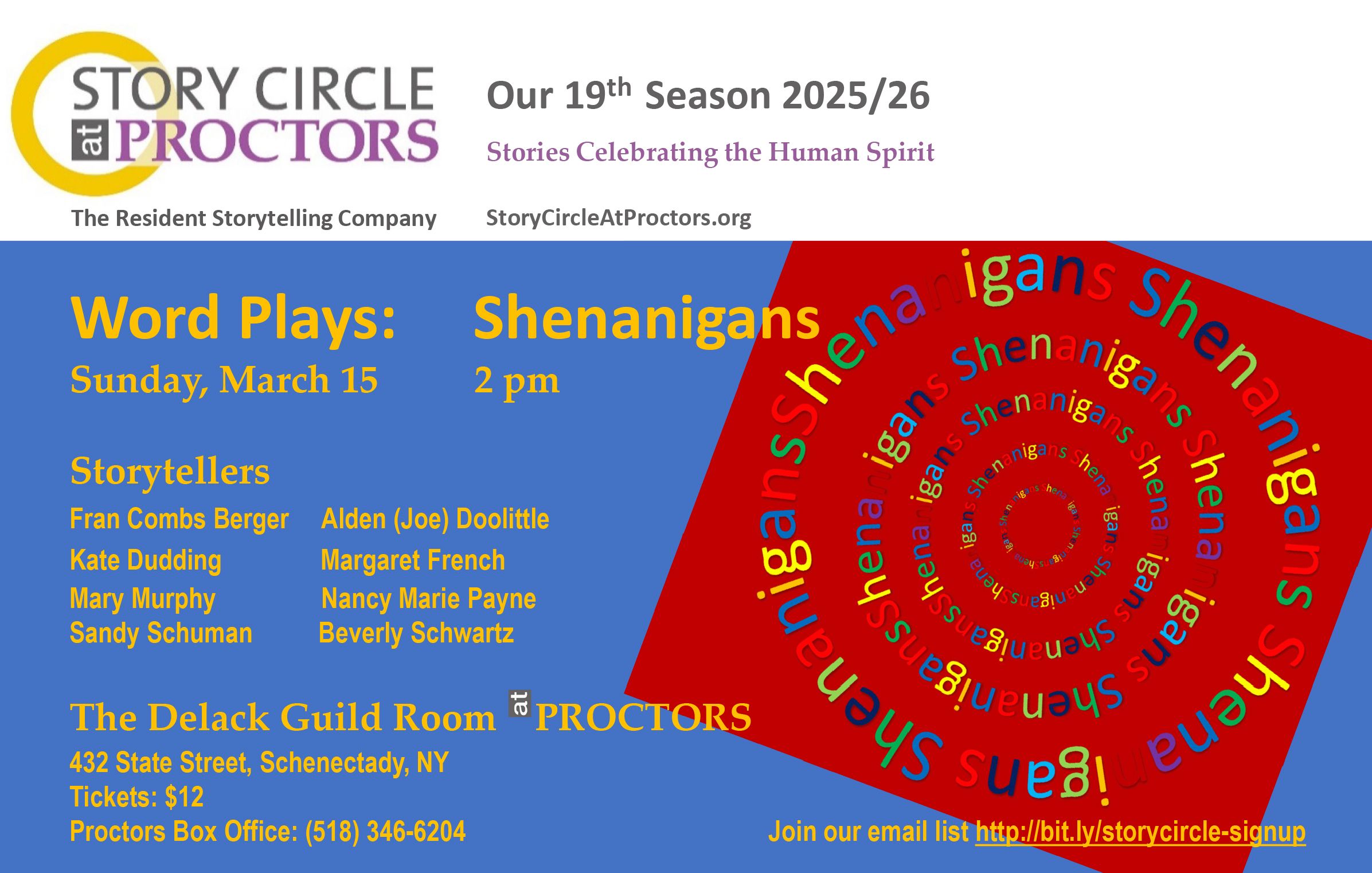 I attended Word Plays at Proctors whenever my schedule allowed. I am so glad I can hear these great tellers again.